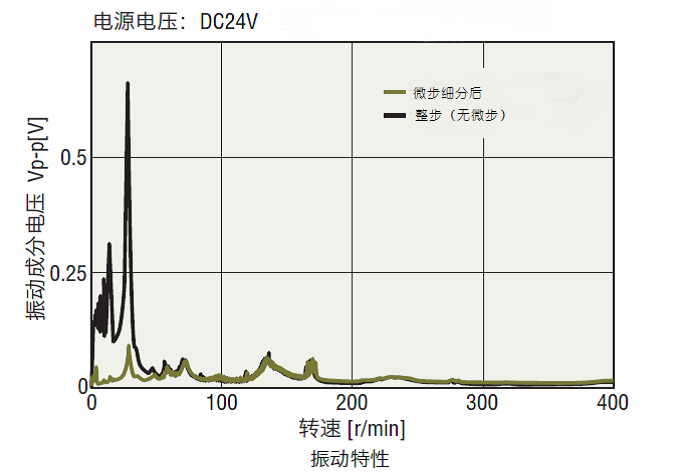 利用微步驅(qū)動技術(shù)執(zhí)行步距角的電氣細(xì)分化,電動機運轉(zhuǎn)更加平穩(wěn),使低速領(lǐng)域的階段性運轉(zhuǎn)更加順暢,并如下圖所示地大幅改善振動。
