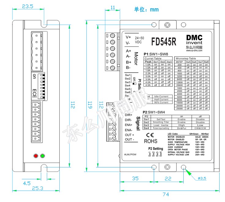 FD545R二相步進(jìn)驅(qū)動(dòng)產(chǎn)品 型號(hào) DSP控制芯片