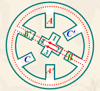 (1)BB' 磁場對 2、4 齒有磁拉力,該拉力使轉子順時針方向轉動。